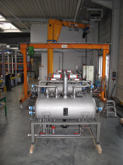 Vakuumkompaktanlagen speziell für Chargen bzw. Batch-Produktion, bei der Herstellung flüssiger Produkte.Die vielfach erfolgreich im Einsatz befindlichen Ausführungen verbinden Wirtschaftlichkeit mit der notwendigen hohen Verfügbarkeit, unter Berücksichtigung der örtlichen Gegebenheiten.Anlage mit zwei Vakuumpumpen die sowohl parallel zur raschen Vorevakuierung und einzeln für das Prozessvakuum betrieben werden können.
